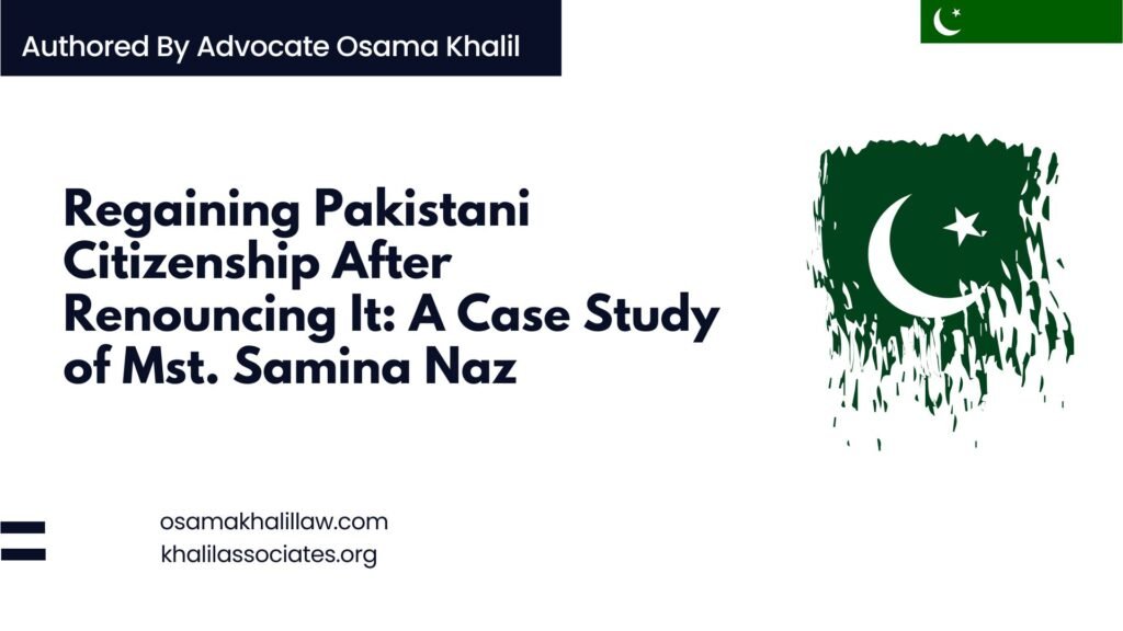 The case of Mst. Samina Naz highlights the legal process involved in regaining Pakistani citizenship after renouncing it. While Pakistani law offers some provisions for women married to foreign nationals, it also requires strict compliance with certain conditions, including the renunciation of foreign nationality. This case underscores the importance of understanding the legal framework surrounding citizenship in Pakistan and the need for individuals to meet the necessary requirements to regain their nationality.